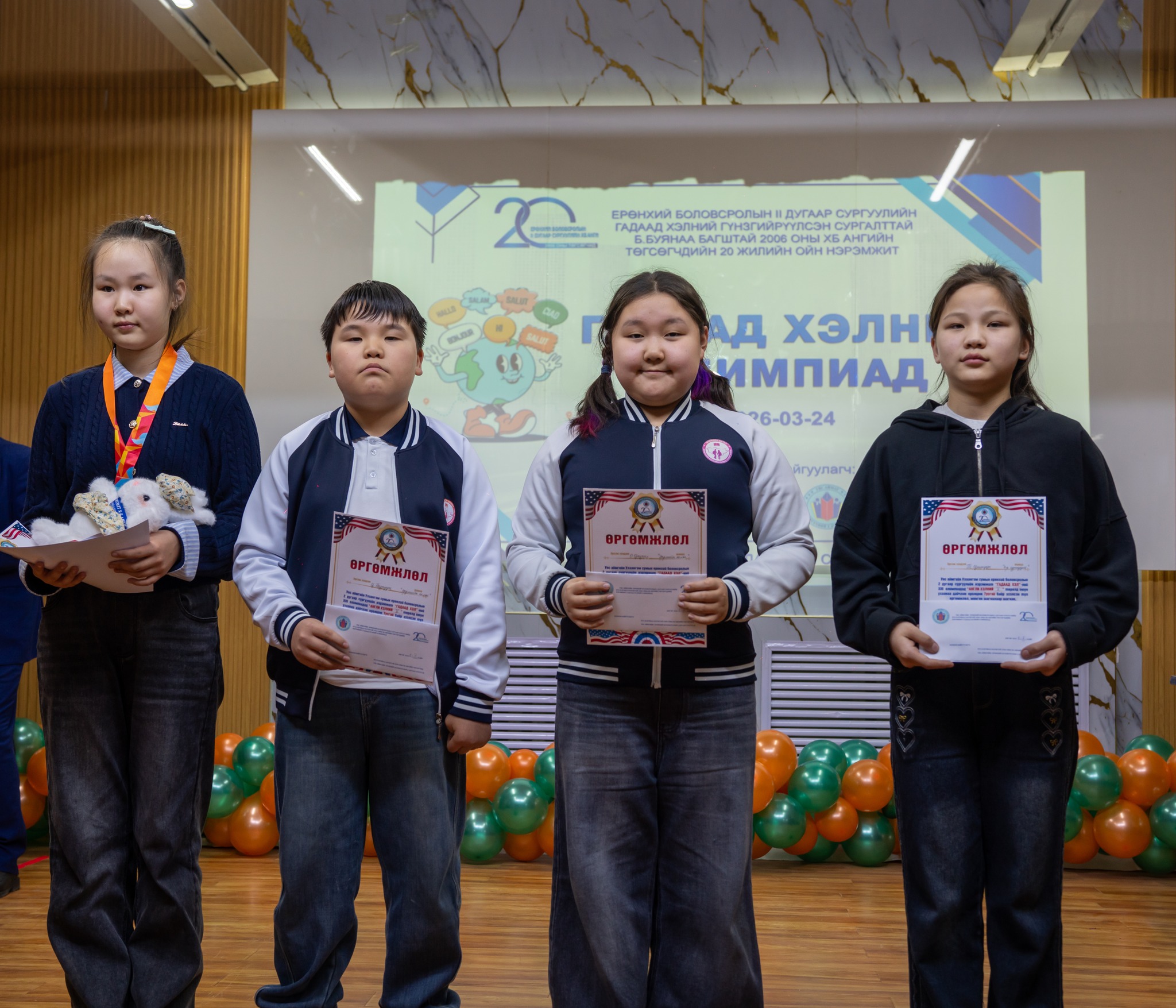 Энэхүү арга хэмжээ нь сурагчдын гадаад хэл сурах идэвхийг нэмэгдүүлэх, ирээдүйн мэргэжил сонголтод нь дэмжлэг үзүүлэх зорилготой бөгөөд олимпиадын шилдгүүд шагналаа гардан авлаа.