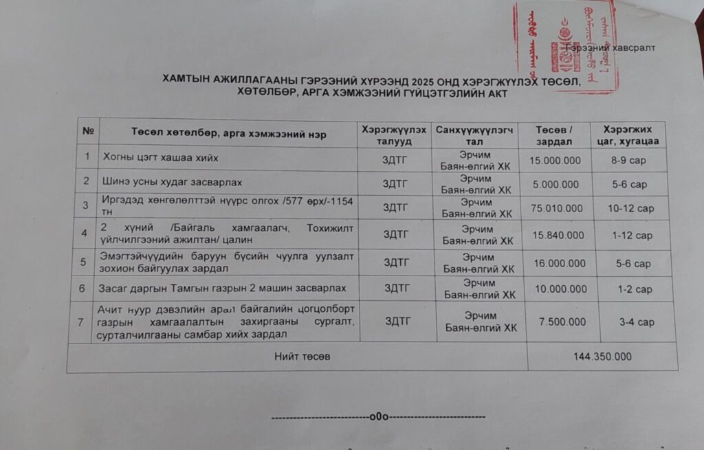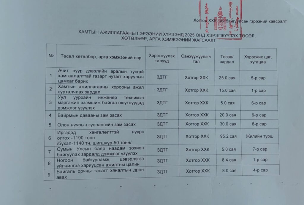 Уг гэрээ нь хамтын ажиллагааны хорооны хурлаар хэлэлцэж 2024 онд байгуулсан гэрээгээ дүгнэж 2025 онд хийж хэрэгжүүлэх ажлаа ярилцсаны үндсэн дээр байгуулагджээ.