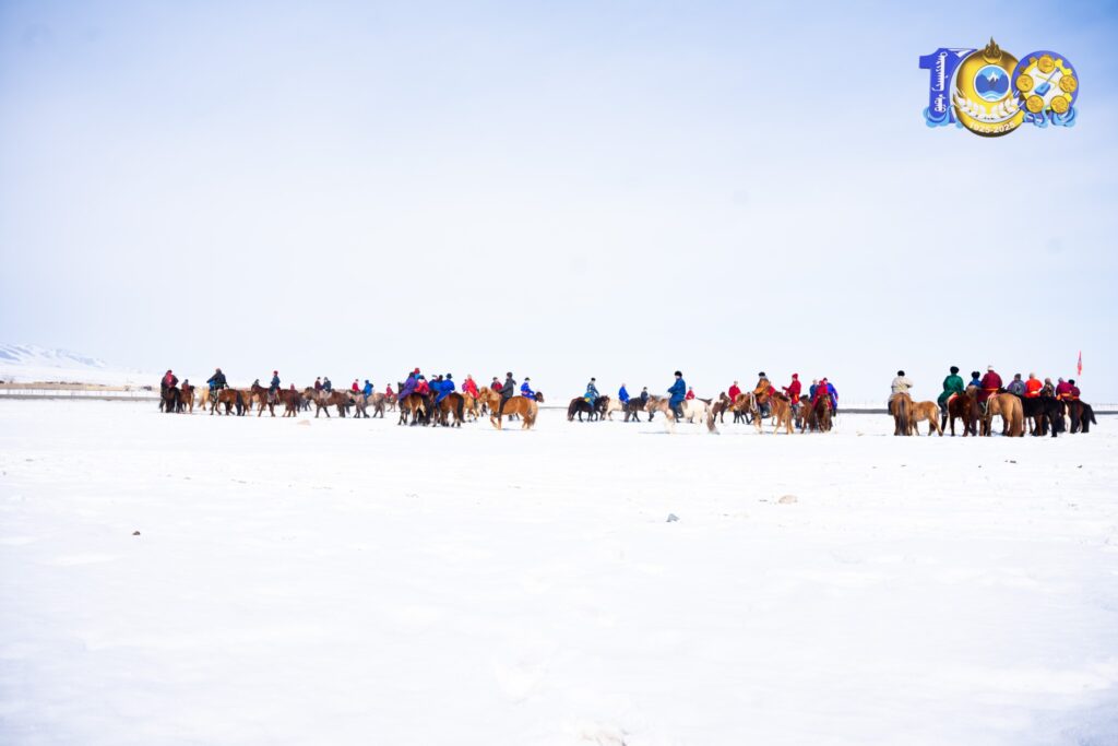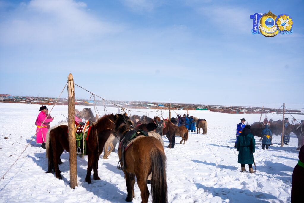 Үйл ажиллагааныхаа эхэнд төрөлх сумынхаа түүхт ойд бэлдэж байгаа нийт уяачдын төлөөлөл сумынхаа 100 жилийн ойгоор одтой сайхан наадахыг билэгдэж “100” гэсэн тоог үүсгэж,