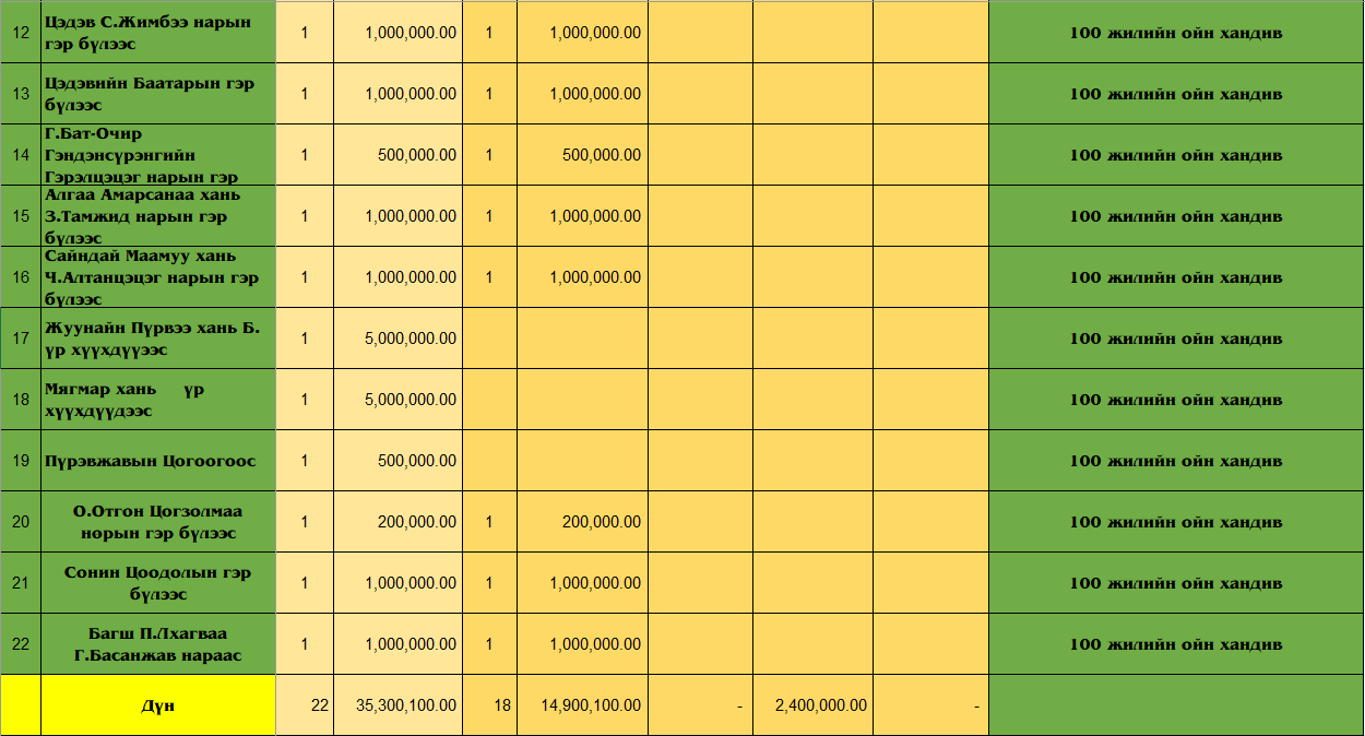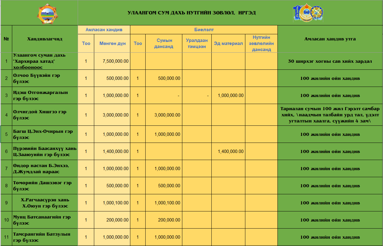 Төрөлх сумынхаа түүхт 100 жилийн ойд СЭЛЭНГЭ АЙМАГ ДАХЬ СУМДЫН СУУГУУЛ иргэдийн хандив