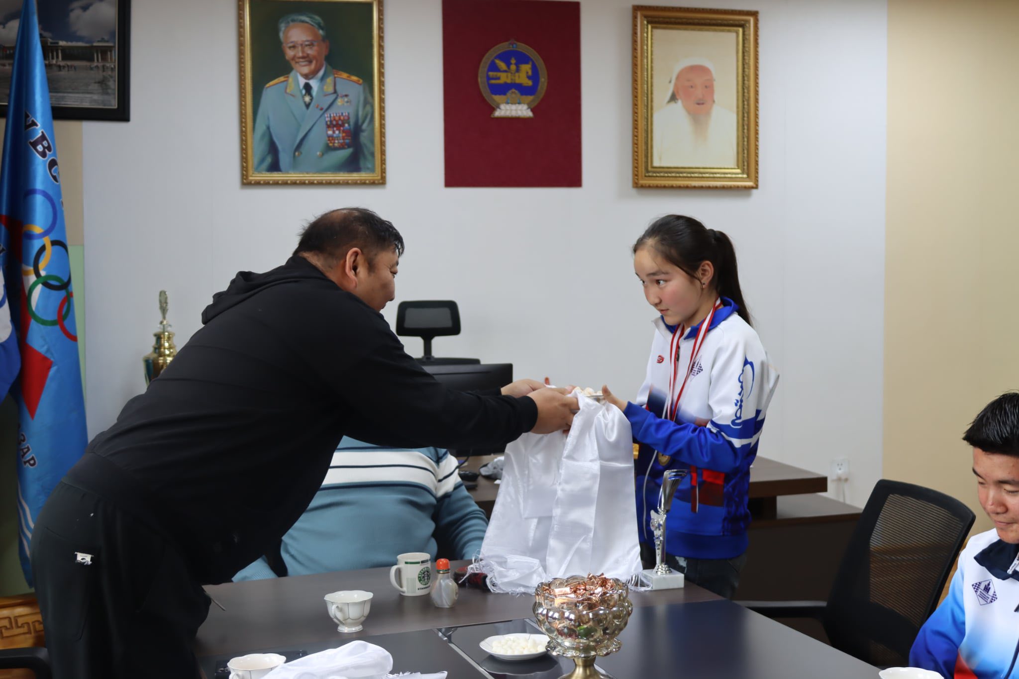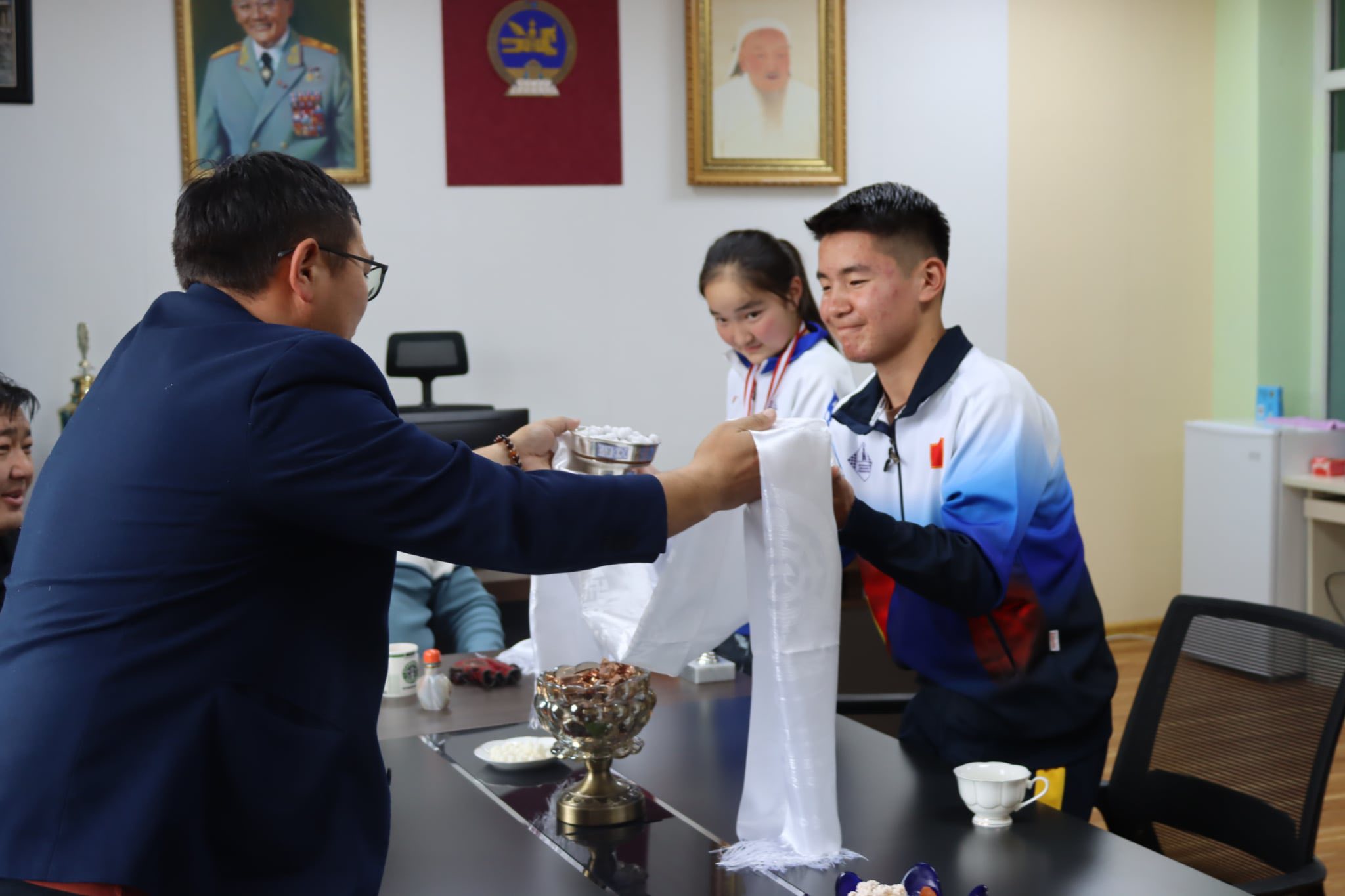 - БЭЛТГЭСЭН БАГШ болох Дэлхийн даамны холбооны мастер Цэгмэдийн УЛААНХҮҮ багшдаа хүндэтгэл үзүүлэн шар хадагтай мөнгөн аяга барьж баярлаж талархаж байгаагаа илэрхийлжээ.