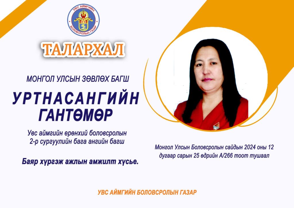 2-р цогцолбор сургуулийн бага ангийн багш Уртнасангийн ГАНТӨМӨР