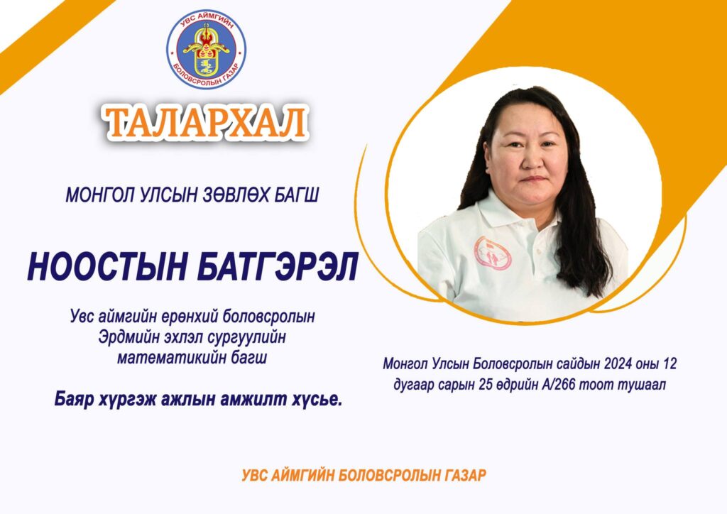 Эрдмийн эхлэл сургуулийн Математикийн багш Ноостын БАТГЭРЭЛ