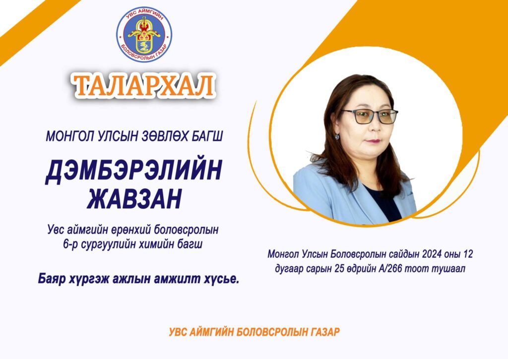 Шинэ оны босгон дээр Монгол улсын Боловсролын сайдын 2024 оны 12 дугаар сарын 25-ны өдрийн А/266 дугаар тушаалаар “ЗӨВЛӨХ БАГШ” мэргэшлийн зэргийн болзол хангасан