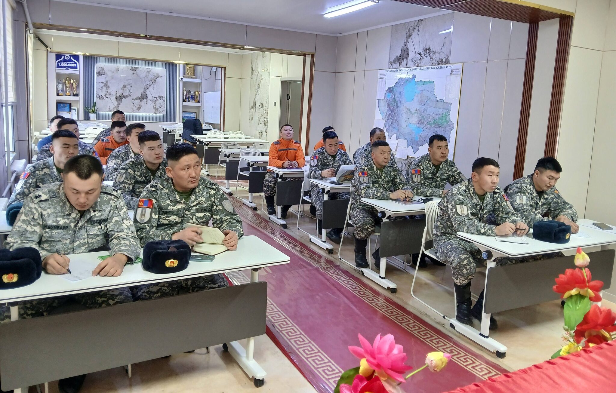 Сургалт, дадлагын үеэр гал унтраах автомашины тактик, техникийн үзүүлэлт, ашиглалтын онцлог, хөөрөг (насос)-ыг ажиллуулах арга ажиллагаа, дасгал норматив хангуулах, техник тоног төхөөрөмжтэй ажиллах үеийн аюулгүй ажиллагаа, мэргэжлийн ур чадварыг дээшлүүлэхэд чиглэсэн онол, дадлагын хичээлүүдийг зохион байгуулсан юм.