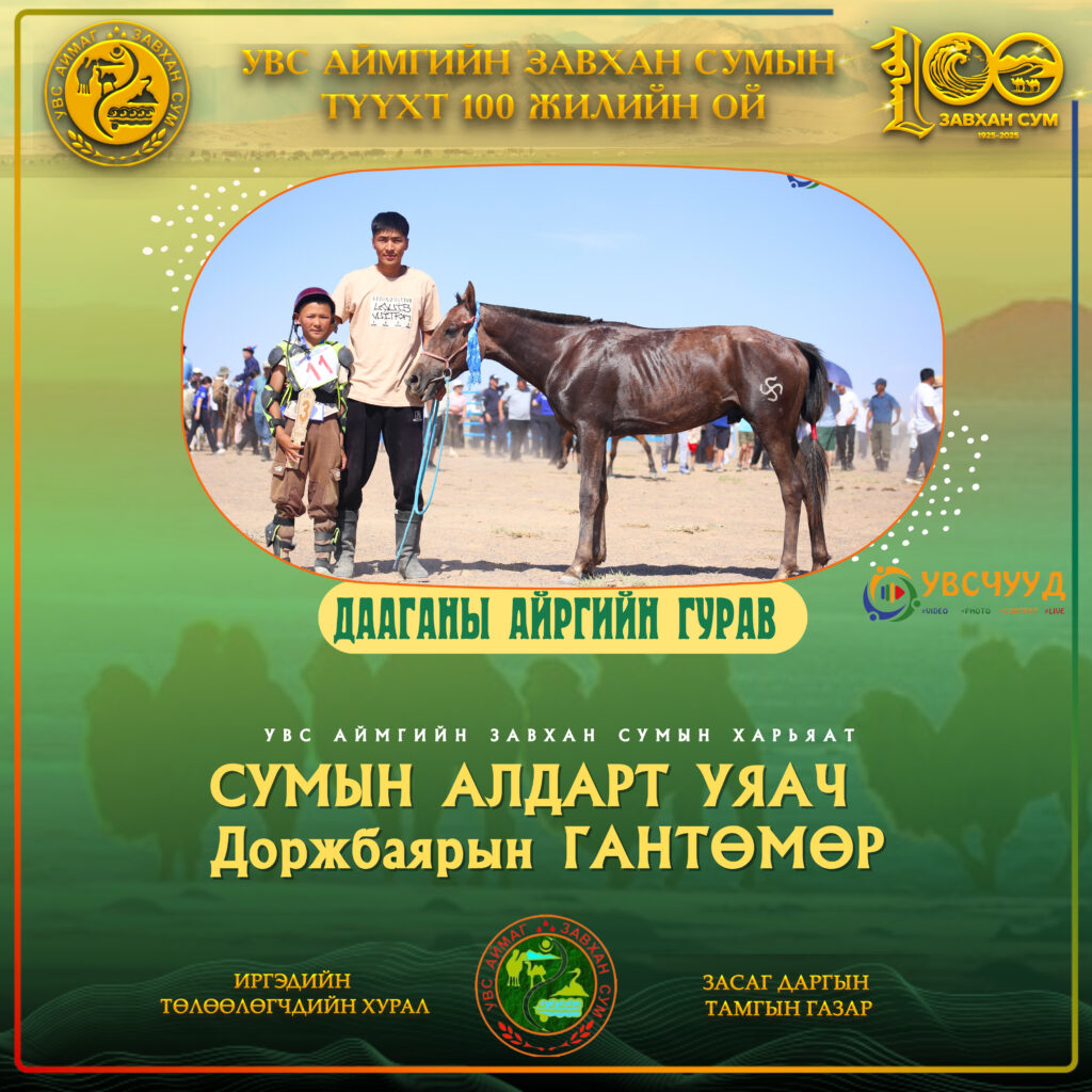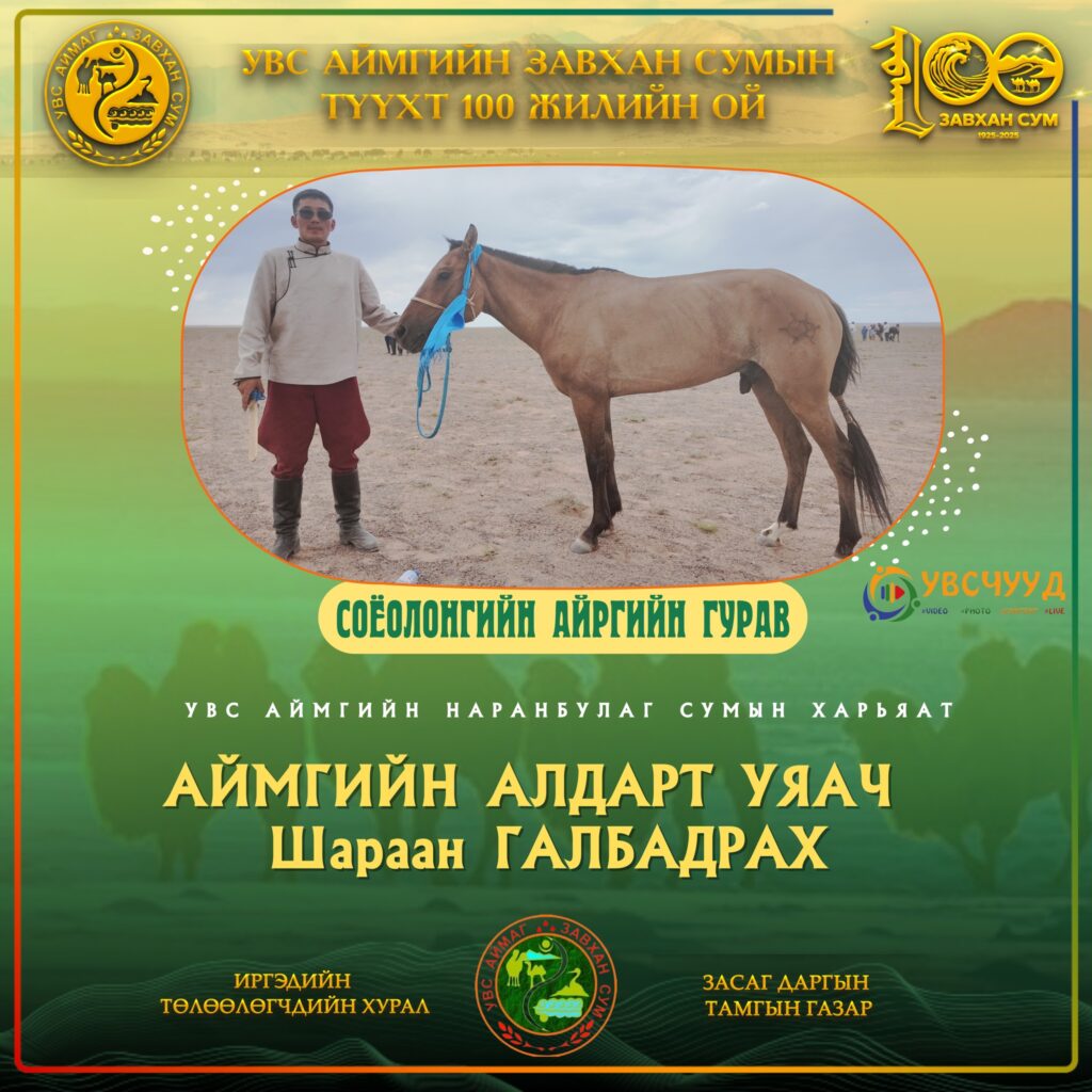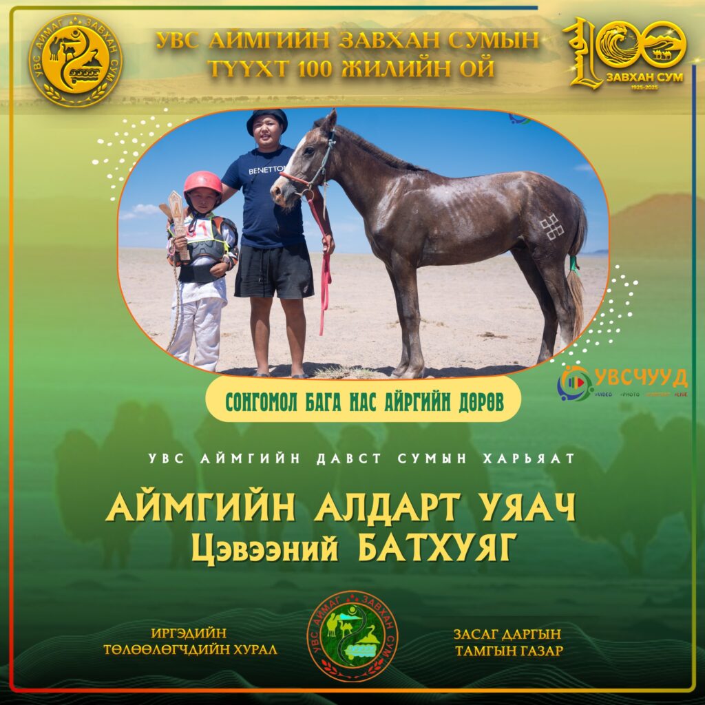 ТҮМЭН ТЭМЭЭТ ЗАВХАН СУМ - 100 ЖИЛ ЗАВХАН 100 Мөст сумын харьяат П.Ган-Эрдэнийн Хонгор хязаалан түрүүллээ Нийтлэсэн: Admin12/27/2025 ЗАВХАН 100 Хяргас нуур багийн малчид түүхт ойн мэнд дэвшүүлэв Нийтлэсэн: Admin12/27/2025 ЗАВХАН 100 Завхан сумын түүхт ойн СОНГОМОЛ БАГА насны түрүү Өлгий сумаас Нийтлэсэн: Admin11/06/2025 ЗАВХАН 100 Тэмээний баяр-2025: Нутгийн АТ түрүүлж, Ховдоос аман хүзүүдлээ Нийтлэсэн: Admin12/27/2025 ЗАВХАН 100 Завхан сумын түүхт ойгоор аав хүү 2 одтой сайхан наадав Нийтлэсэн: Admin11/06/2025 ЗАВХАН 100 Баянсангийн БЯМБАЖАРГАЛЫН хүрэн шүдлэн ЗАВХАН 100-д түрүүллээ Нийтлэсэн: Admin12/27/2025 ЗАВХАН 100 Түмэн тэмээт нутгийн түүхт ойн соёолонгийн түрүү ЦАГААНХАЙРХАН сумаас тодорчээ Нийтлэсэн: Admin11/06/2025 ТҮҮХТ ОЙН ХАНДИВЛАГЧДЫН МЭДЭЭЛЭЛ УВСЫН ТӨГСӨГЧДИЙН ХАНДИВ 1985 оны төгсөгчдийн төлөөлөл 13 сая₮ хандивлаж, 50 сая₮-ийн суулгац өгөхөө амлав Нийтлэсэн: Admin 05/17/2025 УВСЫН ТӨГСӨГЧДИЙН ХАНДИВ 1989 төгсөгчид УВС НУУРЫН дэргэдэх УГТАХ ХААЛГЫГ бүтээн босгоно 05/17/2025 УВСЫН ТӨГСӨГЧДИЙН ХАНДИВ 1987 оны төгсөгч Буянжаргалын ЛХАГВАДОРЖ гэр бүлийнхээ зүгээс 5 сая₮ хандивлана 05/17/2025 УВСЫН ТӨГСӨГЧДИЙН ХАНДИВ 2004 оны төгсөгчид түүхт ойдоо зориулан 84 САЯ₮ хандивлана 05/17/2025 УВСЫН ТӨГСӨГЧДИЙН ХАНДИВ 1986 төгсөгч Баянмандал хайрхан өгөөж ХХК-ийн захирал Л.БАЯРТОГТОХ 20 сая₮ хандивлана 05/17/2025 ЗАВХАН СУМЫН БАГУУДЫН МЭДЭЭЛЭЛ ЗАВХАН 100 Хяргас нуур багийн малчид түүхт ойн мэнд дэвшүүлэв 12/27/2025 ЗАВХАН 100 Тэмээний баяр-2025: Нутгийн АТ түрүүлж, Ховдоос аман хүзүүдлээ 12/27/2025 ХУРДАН МОРЬДЫН НЭГДСЭН МЭДЭЭЛЭЛ ЗАВХАН 100 Завхан сумын түүхт ойн СОНГОМОЛ БАГА насны түрүү Өлгий сумаас 11/06/2025 ЗАВХАН 100 Түмэн тэмээт нутгийн түүхт ойн соёолонгийн түрүү ЦАГААНХАЙРХАН сумаас тодорчээ 11/06/2025 ЗАВХАН 100 Баянсангийн БЯМБАЖАРГАЛЫН хүрэн шүдлэн ЗАВХАН 100-д түрүүллээ 12/27/2025 ЗАВХАН 100 Мөст сумын харьяат П.Ган-Эрдэнийн Хонгор хязаалан түрүүллээ 12/27/2025 Завхан сум Завхан сумын түүхт 100 жилийн ойд түрүүлж айрагдсан дааганууд 11/06/2025