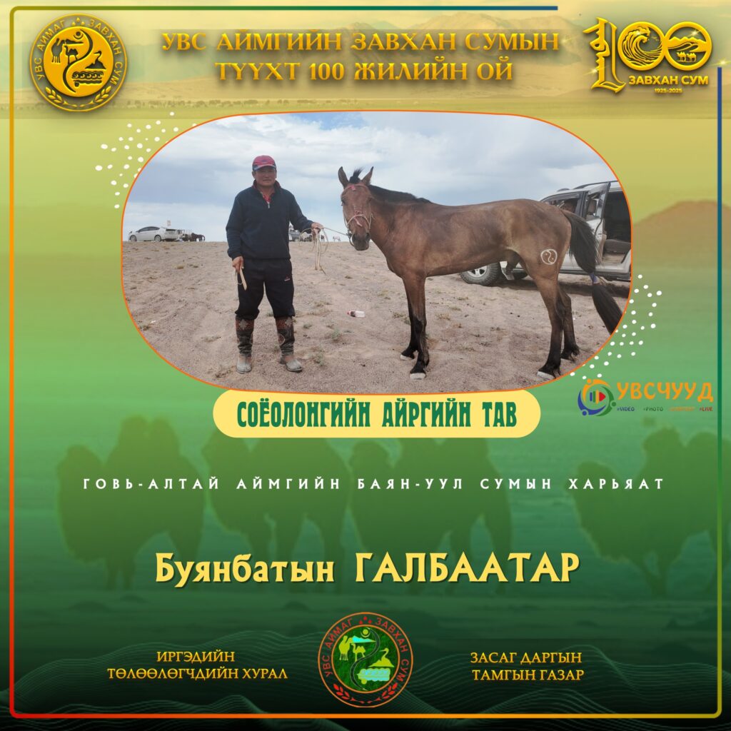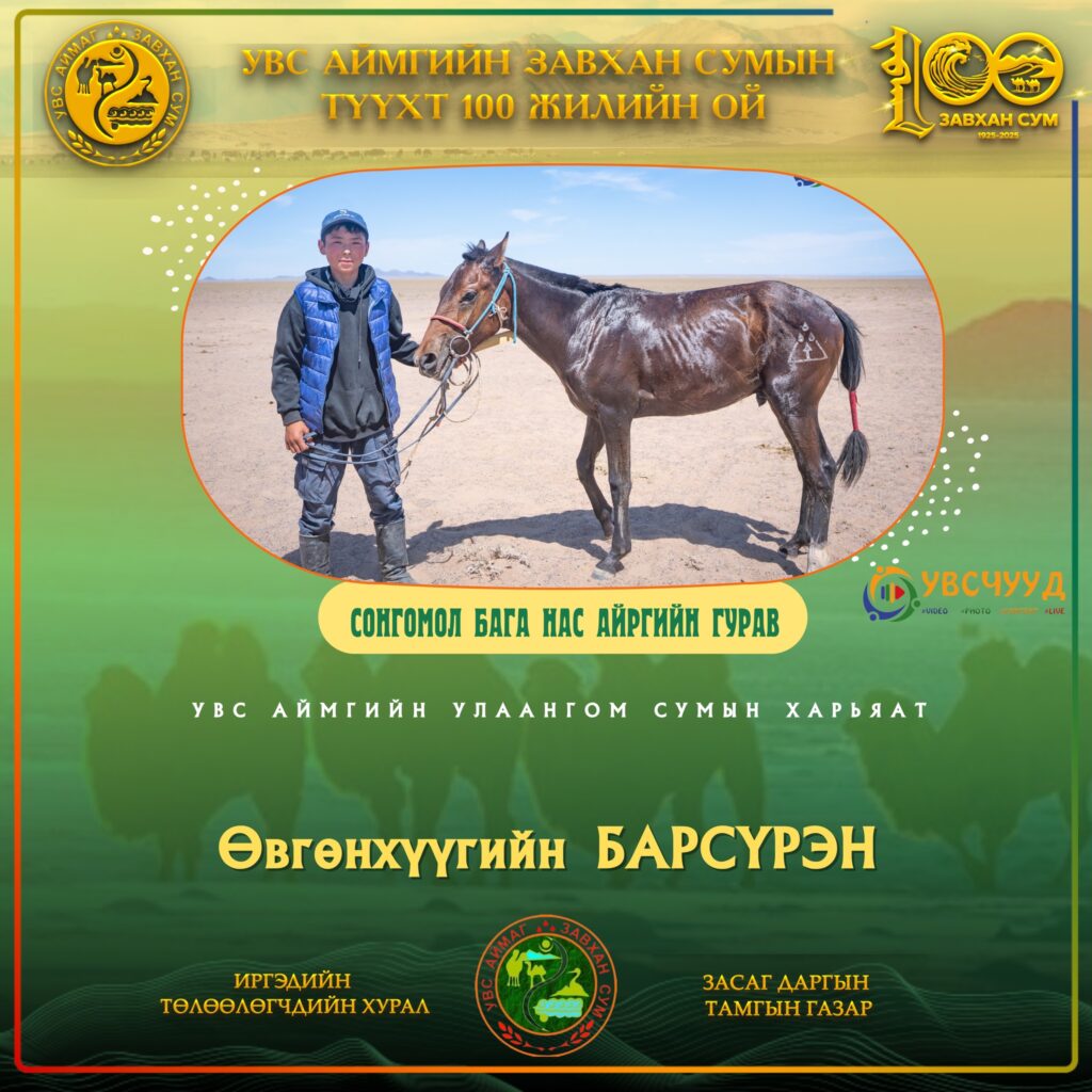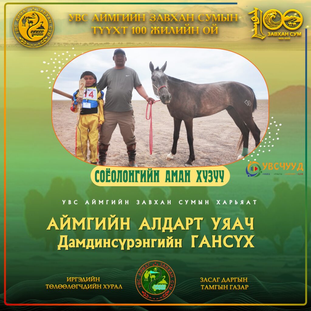 ТҮМЭН ТЭМЭЭТ ЗАВХАН СУМ - 100 ЖИЛ ЗАВХАН 100 Мөст сумын харьяат П.Ган-Эрдэнийн Хонгор хязаалан түрүүллээ Нийтлэсэн: Admin12/27/2025 ЗАВХАН 100 Хяргас нуур багийн малчид түүхт ойн мэнд дэвшүүлэв Нийтлэсэн: Admin12/27/2025 ЗАВХАН 100 Завхан сумын түүхт ойн СОНГОМОЛ БАГА насны түрүү Өлгий сумаас Нийтлэсэн: Admin11/06/2025 ЗАВХАН 100 Тэмээний баяр-2025: Нутгийн АТ түрүүлж, Ховдоос аман хүзүүдлээ Нийтлэсэн: Admin12/27/2025 ЗАВХАН 100 Завхан сумын түүхт ойгоор аав хүү 2 одтой сайхан наадав Нийтлэсэн: Admin11/06/2025 ЗАВХАН 100 Баянсангийн БЯМБАЖАРГАЛЫН хүрэн шүдлэн ЗАВХАН 100-д түрүүллээ Нийтлэсэн: Admin12/27/2025 ЗАВХАН 100 Түмэн тэмээт нутгийн түүхт ойн соёолонгийн түрүү ЦАГААНХАЙРХАН сумаас тодорчээ Нийтлэсэн: Admin11/06/2025 ТҮҮХТ ОЙН ХАНДИВЛАГЧДЫН МЭДЭЭЛЭЛ УВСЫН ТӨГСӨГЧДИЙН ХАНДИВ 1985 оны төгсөгчдийн төлөөлөл 13 сая₮ хандивлаж, 50 сая₮-ийн суулгац өгөхөө амлав Нийтлэсэн: Admin 05/17/2025 УВСЫН ТӨГСӨГЧДИЙН ХАНДИВ 1989 төгсөгчид УВС НУУРЫН дэргэдэх УГТАХ ХААЛГЫГ бүтээн босгоно 05/17/2025 УВСЫН ТӨГСӨГЧДИЙН ХАНДИВ 1987 оны төгсөгч Буянжаргалын ЛХАГВАДОРЖ гэр бүлийнхээ зүгээс 5 сая₮ хандивлана 05/17/2025 УВСЫН ТӨГСӨГЧДИЙН ХАНДИВ 2004 оны төгсөгчид түүхт ойдоо зориулан 84 САЯ₮ хандивлана 05/17/2025 УВСЫН ТӨГСӨГЧДИЙН ХАНДИВ 1986 төгсөгч Баянмандал хайрхан өгөөж ХХК-ийн захирал Л.БАЯРТОГТОХ 20 сая₮ хандивлана 05/17/2025 ЗАВХАН СУМЫН БАГУУДЫН МЭДЭЭЛЭЛ ЗАВХАН 100 Хяргас нуур багийн малчид түүхт ойн мэнд дэвшүүлэв 12/27/2025 ЗАВХАН 100 Тэмээний баяр-2025: Нутгийн АТ түрүүлж, Ховдоос аман хүзүүдлээ 12/27/2025 ХУРДАН МОРЬДЫН НЭГДСЭН МЭДЭЭЛЭЛ ЗАВХАН 100 Завхан сумын түүхт ойн СОНГОМОЛ БАГА насны түрүү Өлгий сумаас 11/06/2025 ЗАВХАН 100 Түмэн тэмээт нутгийн түүхт ойн соёолонгийн түрүү ЦАГААНХАЙРХАН сумаас тодорчээ 11/06/2025 ЗАВХАН 100 Баянсангийн БЯМБАЖАРГАЛЫН хүрэн шүдлэн ЗАВХАН 100-д түрүүллээ 12/27/2025 ЗАВХАН 100 Мөст сумын харьяат П.Ган-Эрдэнийн Хонгор хязаалан түрүүллээ 12/27/2025 Завхан сум Завхан сумын түүхт 100 жилийн ойд түрүүлж айрагдсан дааганууд 11/06/2025